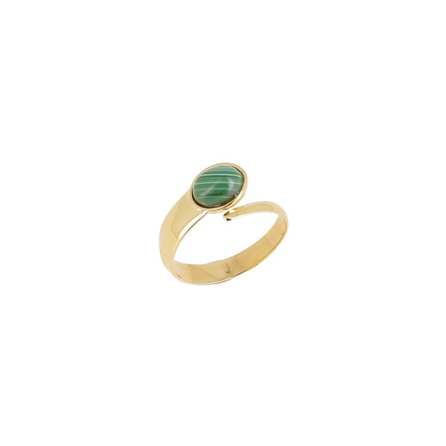 Bague Zag en acier doré, malachite et oxyde de zirconium, taille ajustable