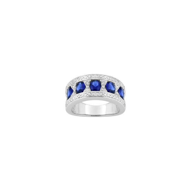 Bague en or blanc, diamant 0.03ct et topaze bleue