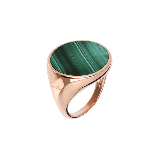 Alba Bague Bronzallure Alba en métal doré rose à l'or fin 18 carats et malachite, taille 54
