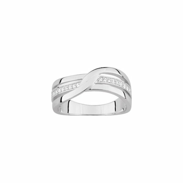 Bague en argent rhodié, saphir synthétique et oxydes de zirconium