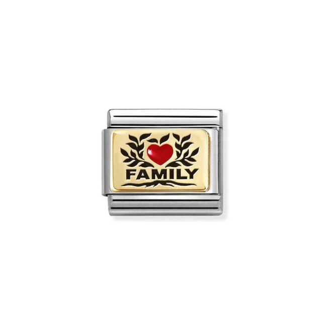 Composable Charms Nomination Italy Composable en acier et or jaune, émail, Famille cœur