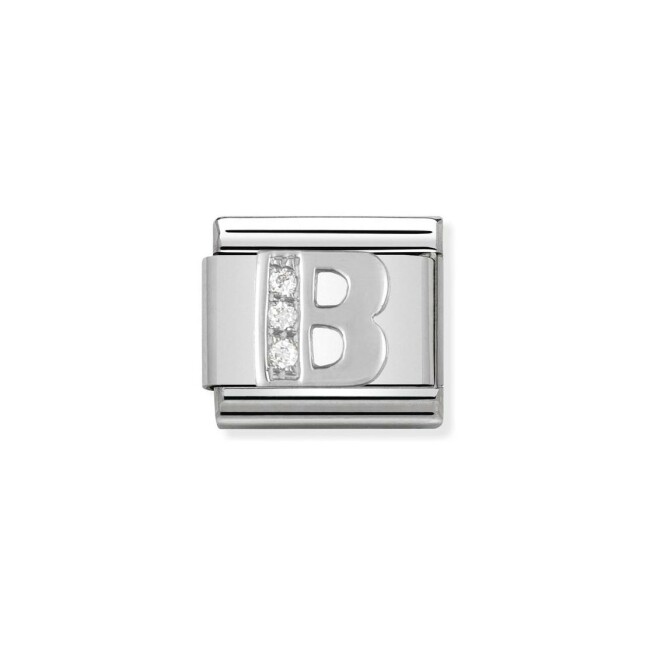 Composable Charms Nomination Italy Composable Alphabet en acier, argent et zircon, B