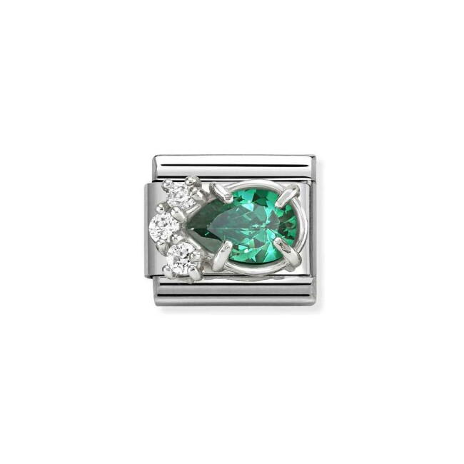 Composable Charms Nomination Italy Composable Classic en acier, argent et oxydes de zirconium, Goutte Verte