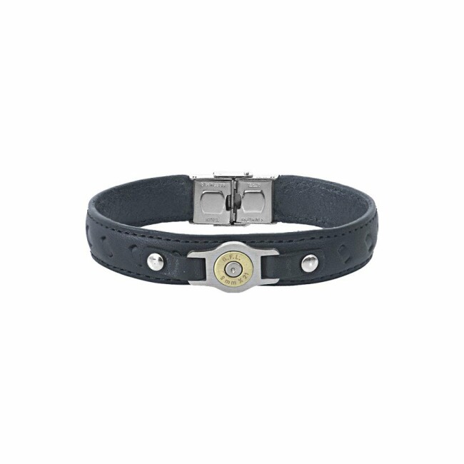 Bracelet Elden Paris Bang Bang en acier bullet et cordon noir
