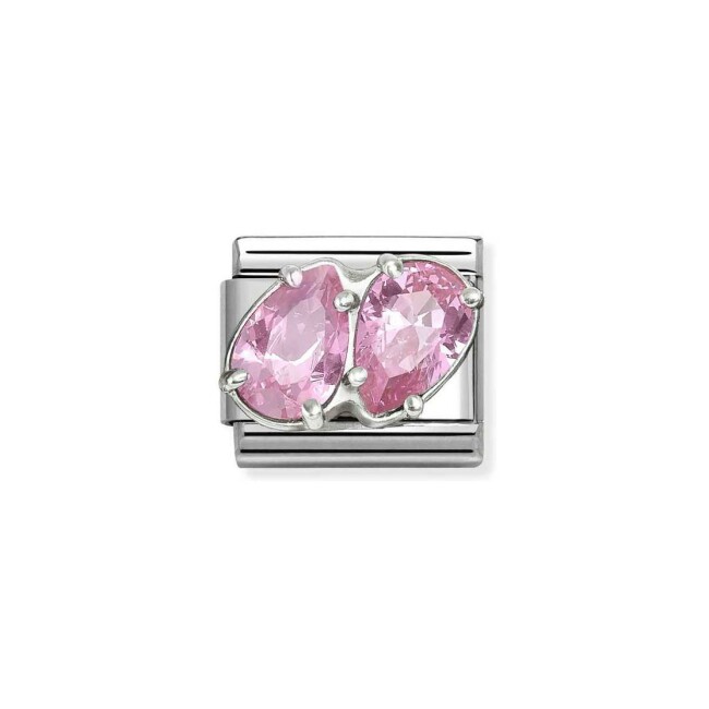 Composable Charms Nomination Italy Composable Classic en acier, argent et oxydes de zirconium, Deux gouttes rose