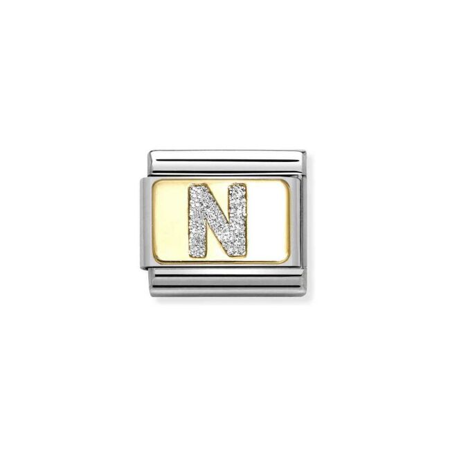 Composable Charms Nomination Italy Composable Alphabet en acier, or jaune et émail, N