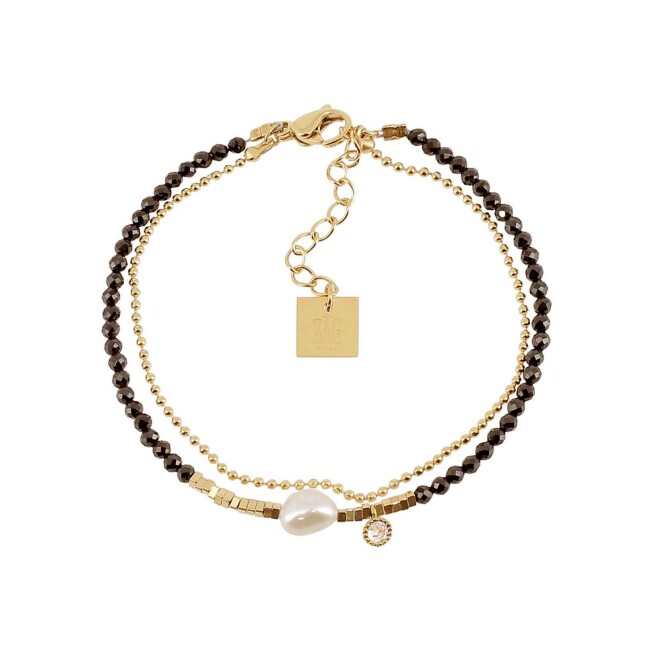 Bracelet Zag Ecrin en acier doré et oxyde de zirconium, Noir