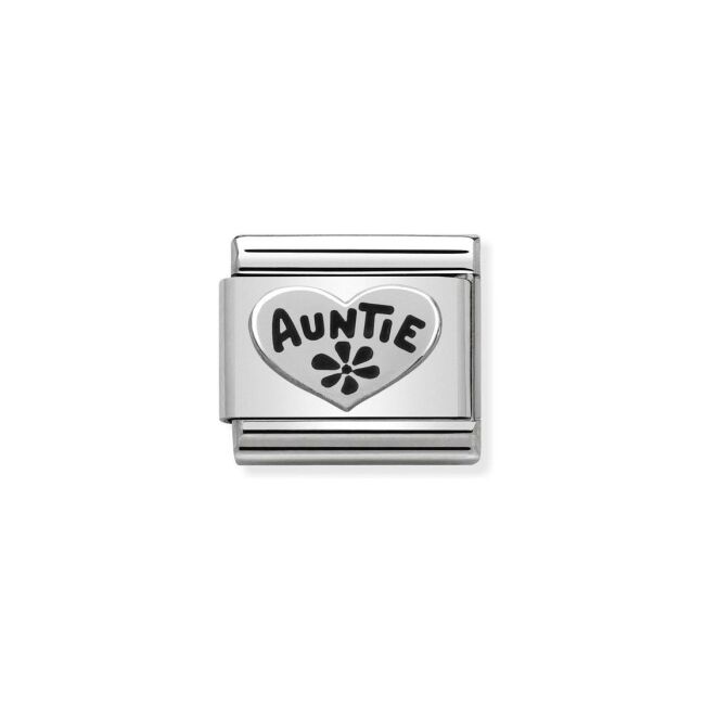 Composable Charms Nomination Italy Composable Symboles en acier, argent et oxydes de zirconium, Coeur Auntie