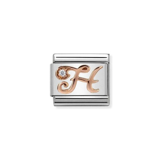 Composable Charms Nomination Italy Composable Alphabet en acier, or rose et zircon, K