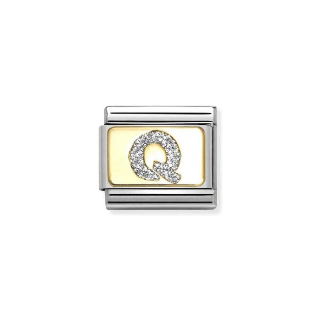 Composable Charms Nomination Italy Composable Alphabet en acier, or jaune et émail, Q