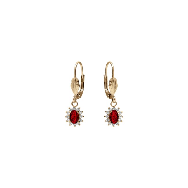 Boucles d'oreilles dormeuse plaqué or oxyde central rouge foncé entourage oxydes blancs 7.5mm x 9.5mm