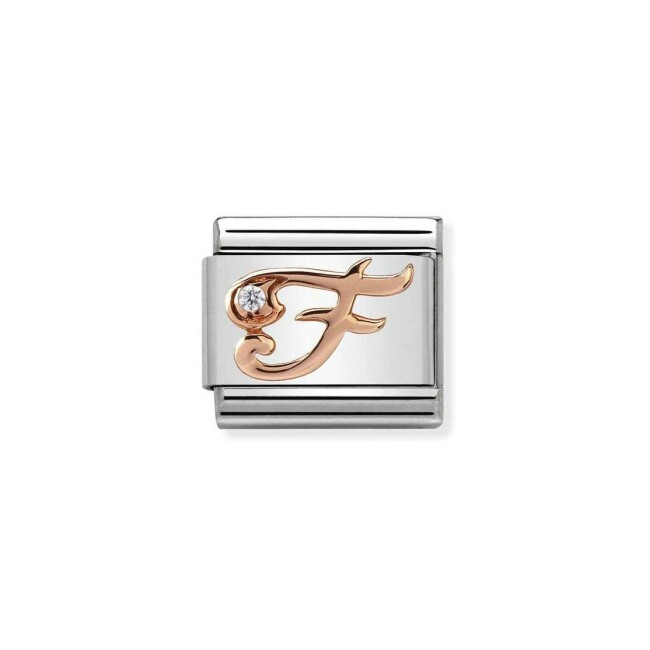 Composable Charms Nomination Italy Composable Alphabet en acier, or rose et zircon, F