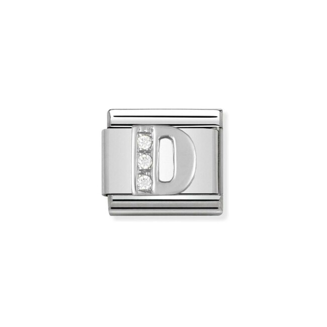 Composable Charms Nomination Italy Composable Alphabet en acier, argent et zircon, D