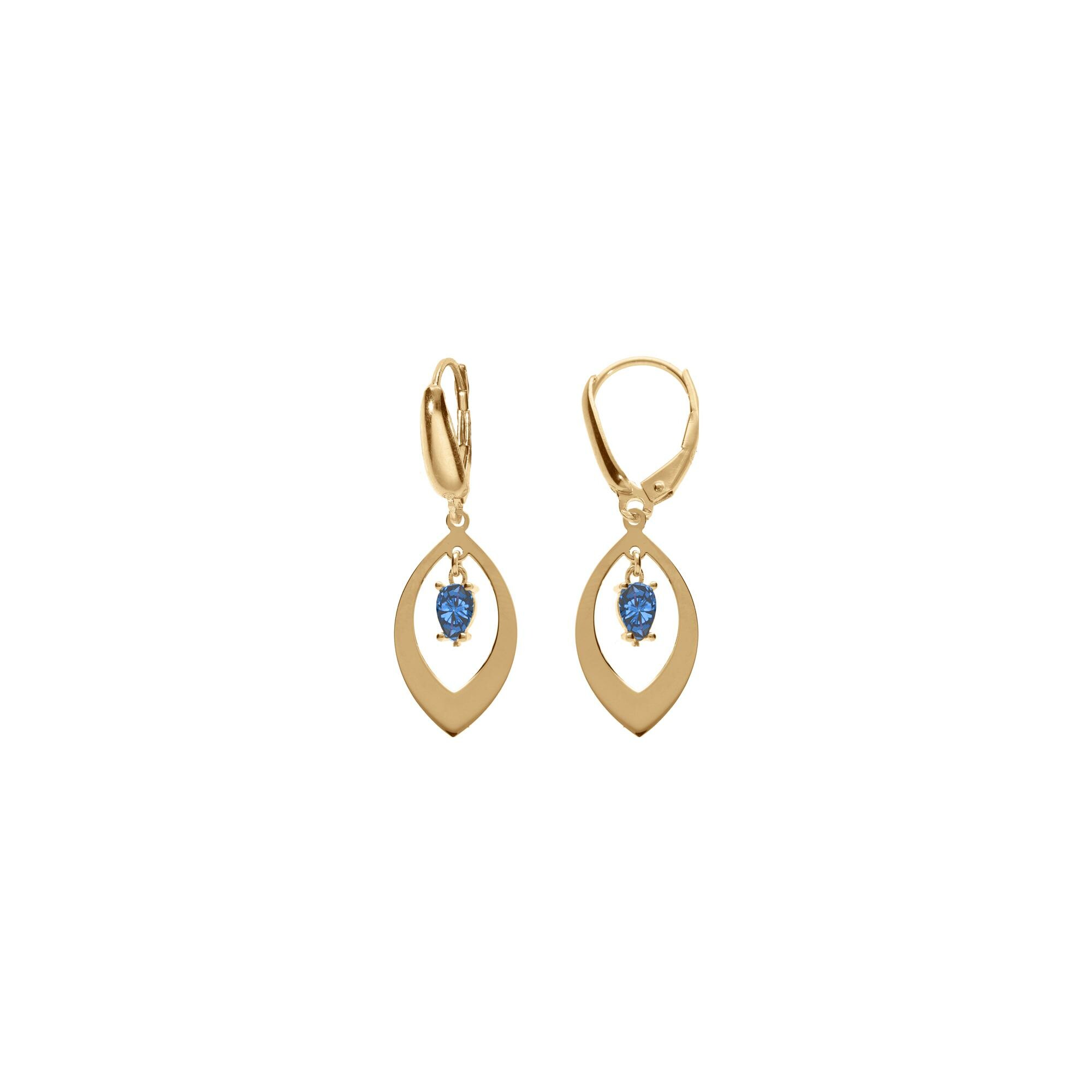 Boucles d'oreilles dormeuse argent doré navette et oxyde bleu foncé