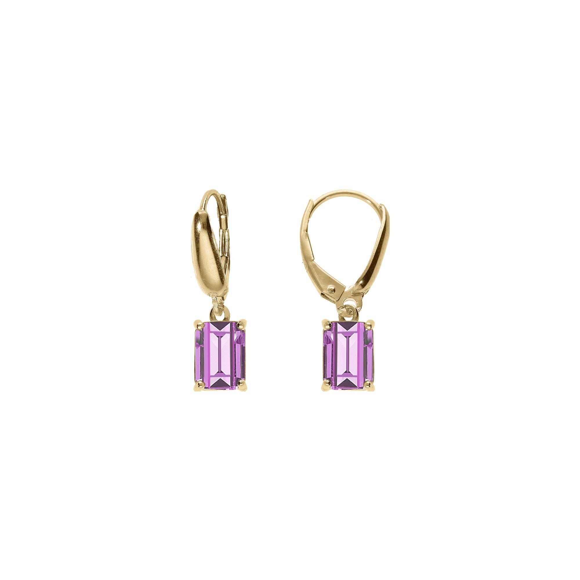 Boucles d'oreilles dormeuse argent doré oxyde rectangulaire violet