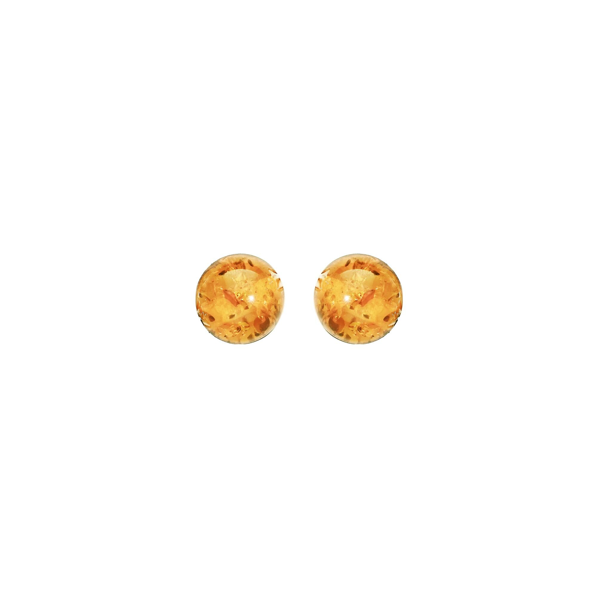 Boucles d'oreilles tige argent rhodié boule 5mm ambre véritable
