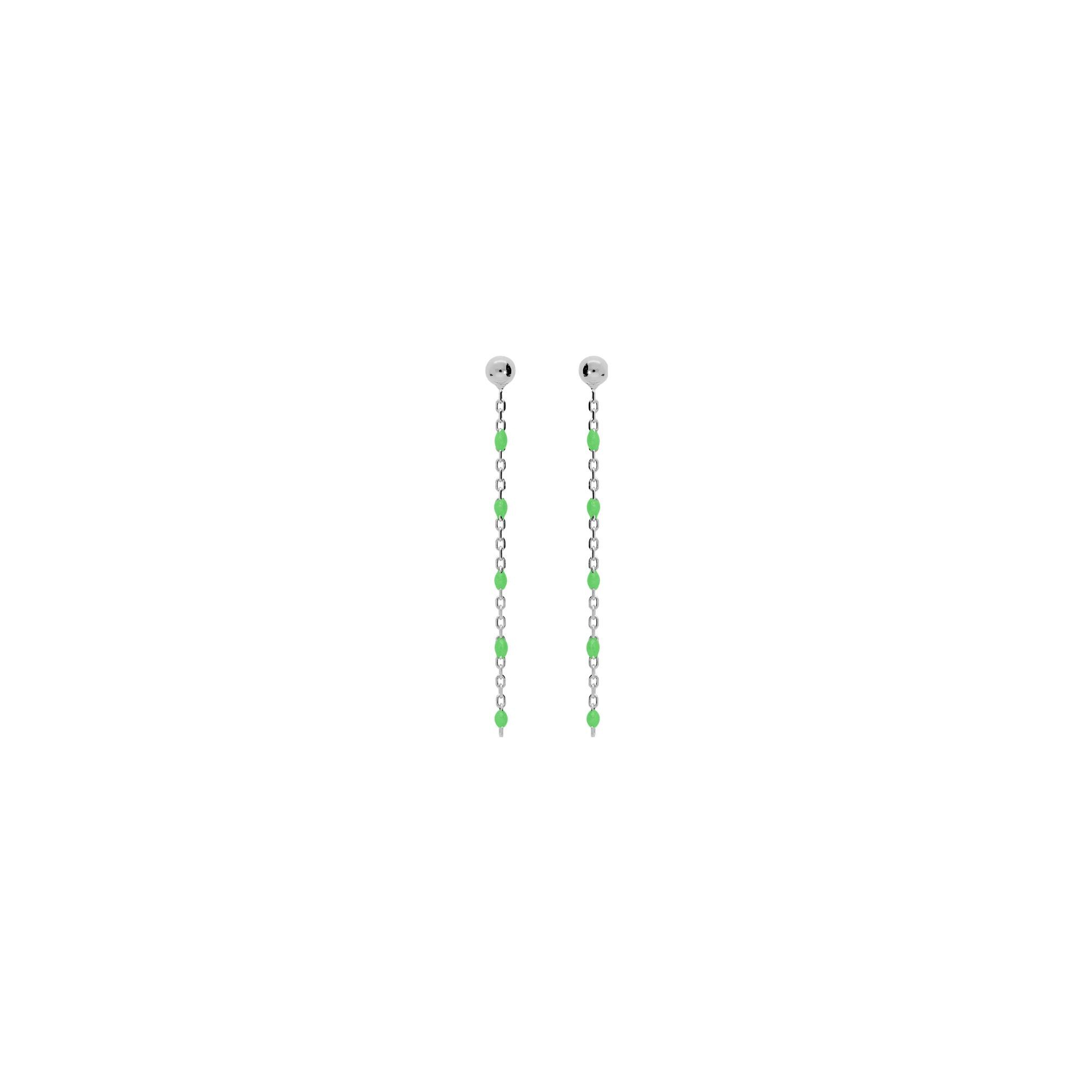 Boucles d'oreilles tige argent rhodié olives résine vert fluo