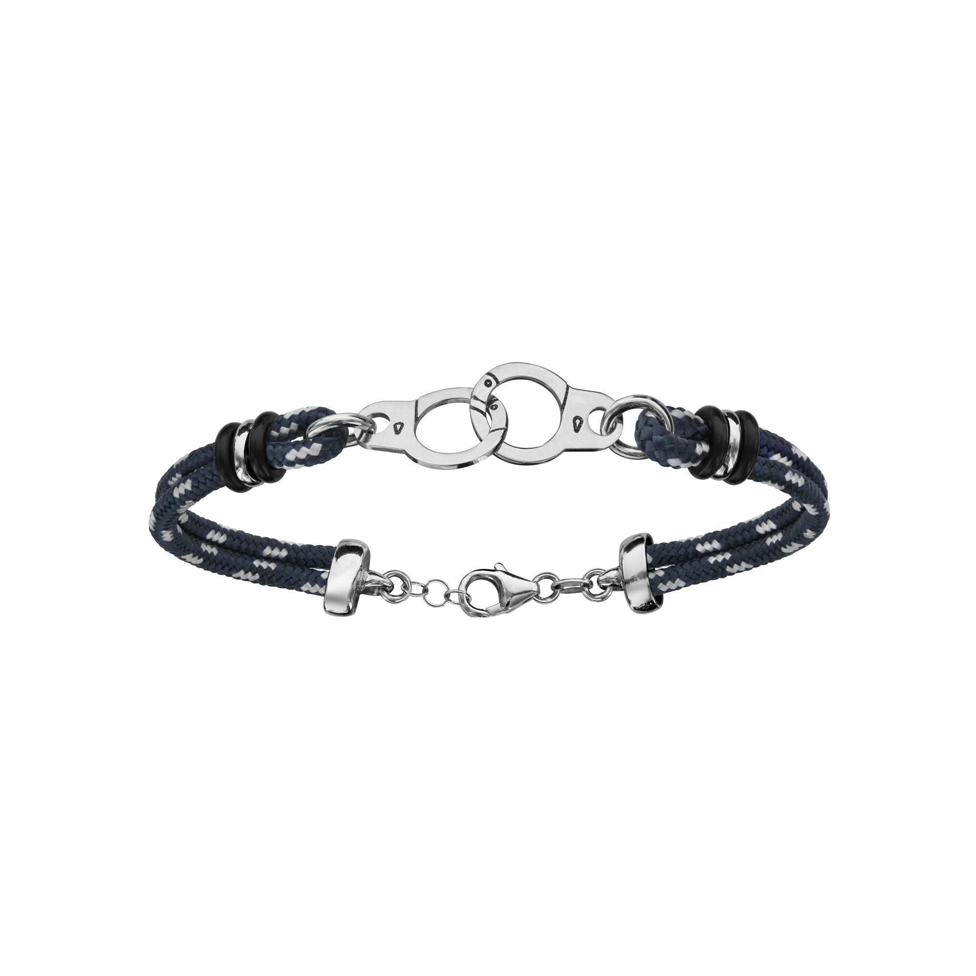 Bracelet argent rhodié 2 rangs corde bleu marine et rouge menottes 18+4cm