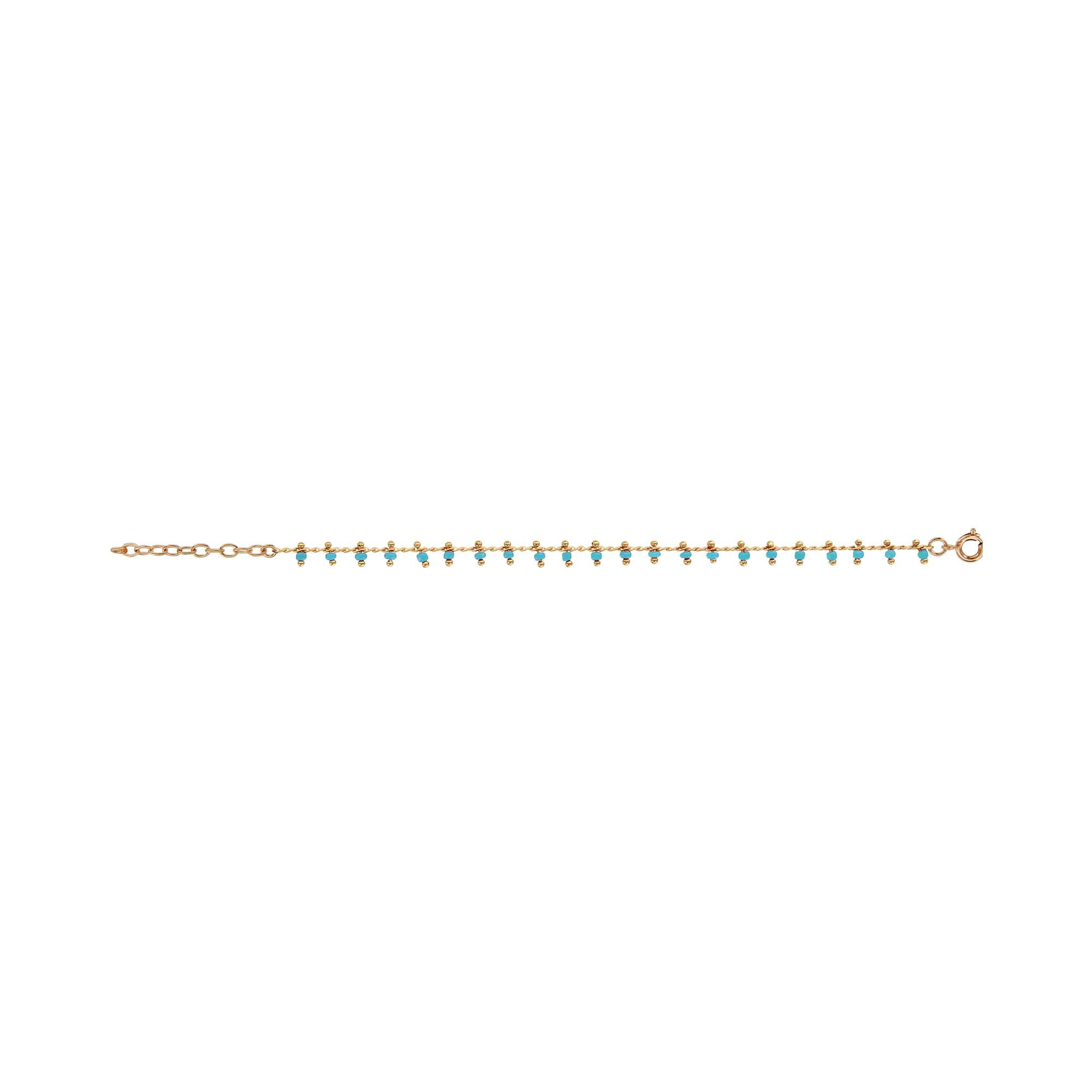 Bracelet plaqué or pampilles boules turquoises synthétique 16+2cm
