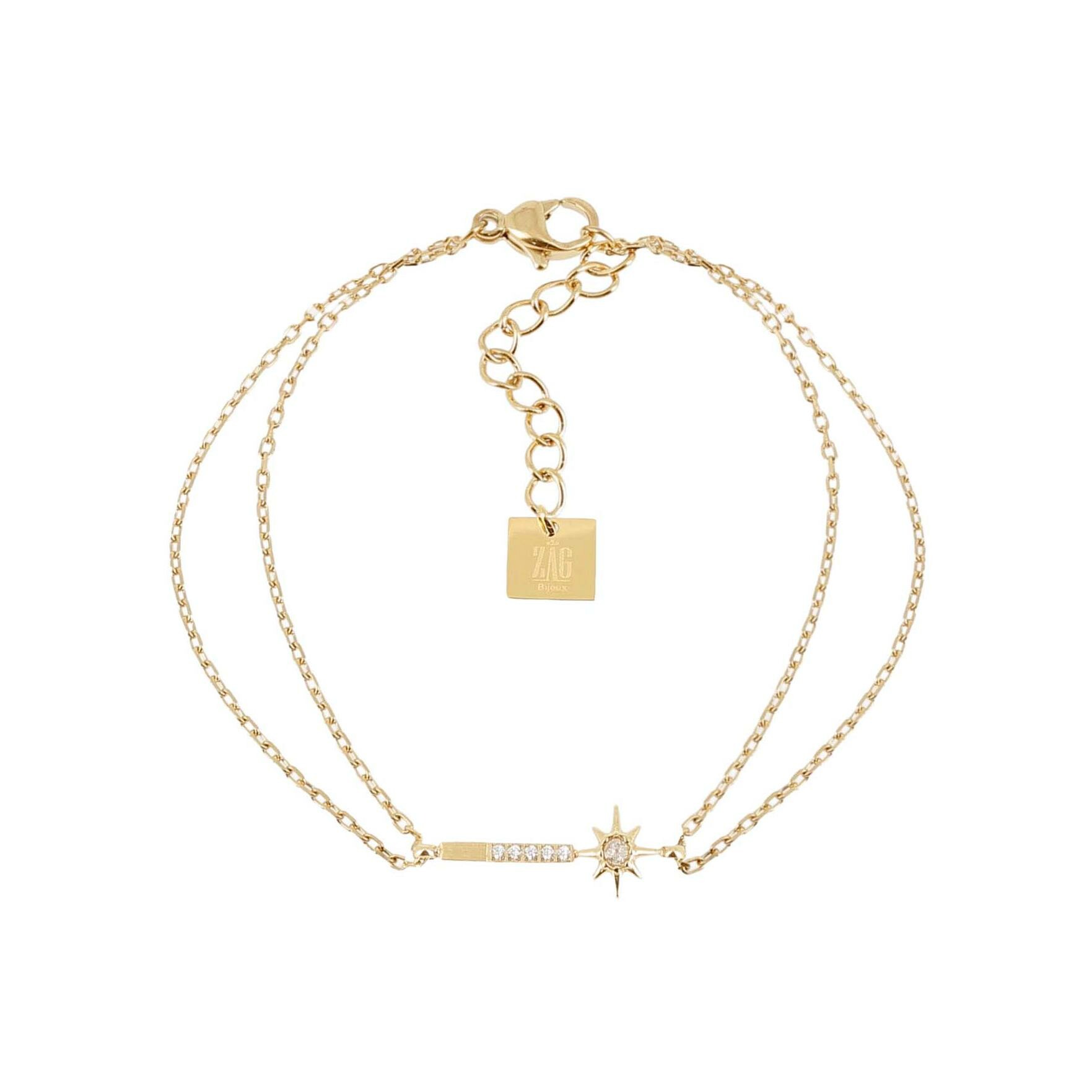 Bracelet Zag Dispara en acier doré et oxyde de zirconium