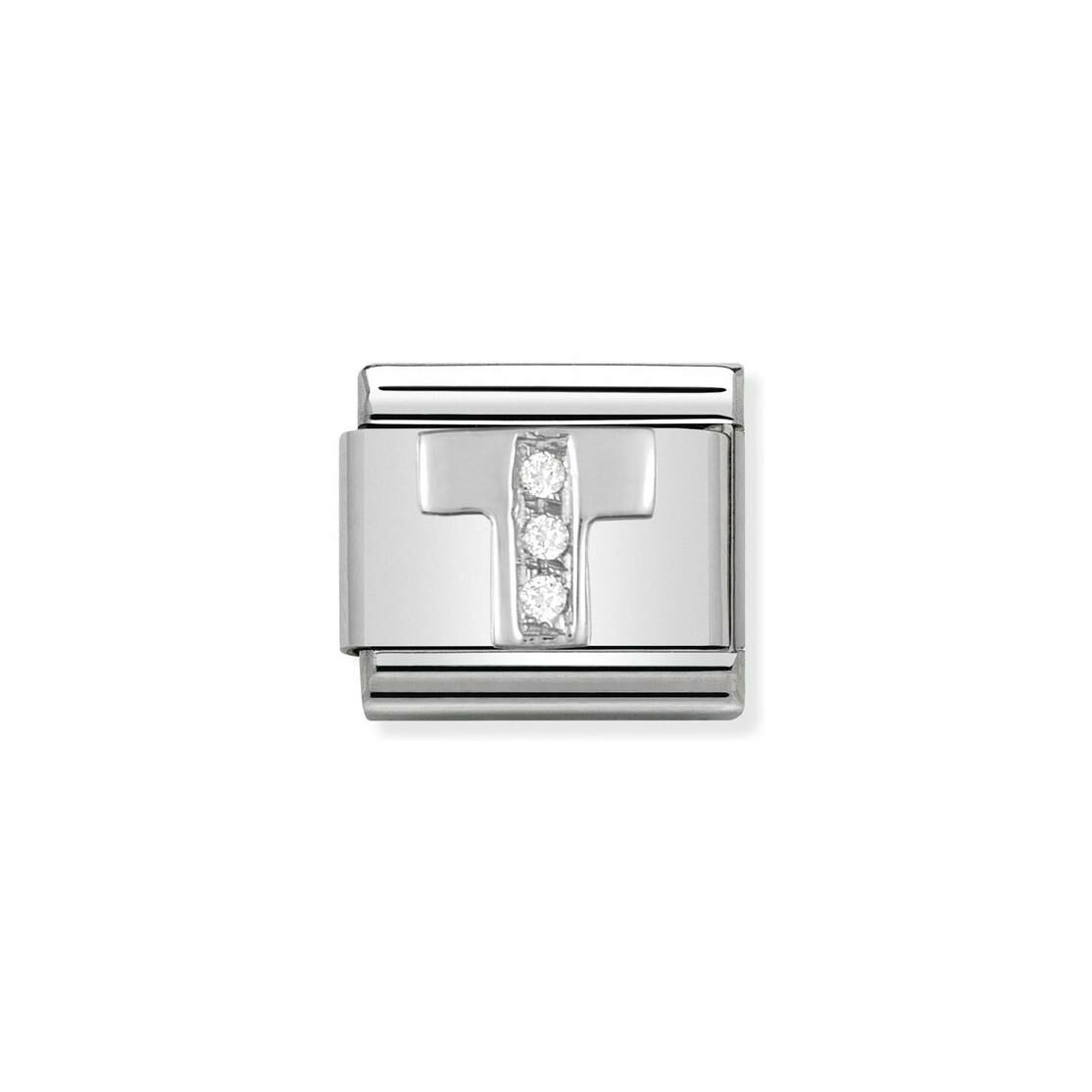 Charms Nomination Italy Composable Alphabet en acier, argent et zircon, T