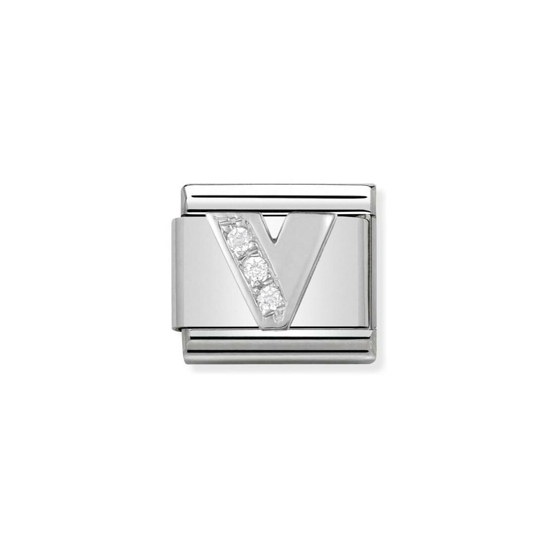 Charms Nomination Italy Composable Alphabet en acier, argent et zircon, V