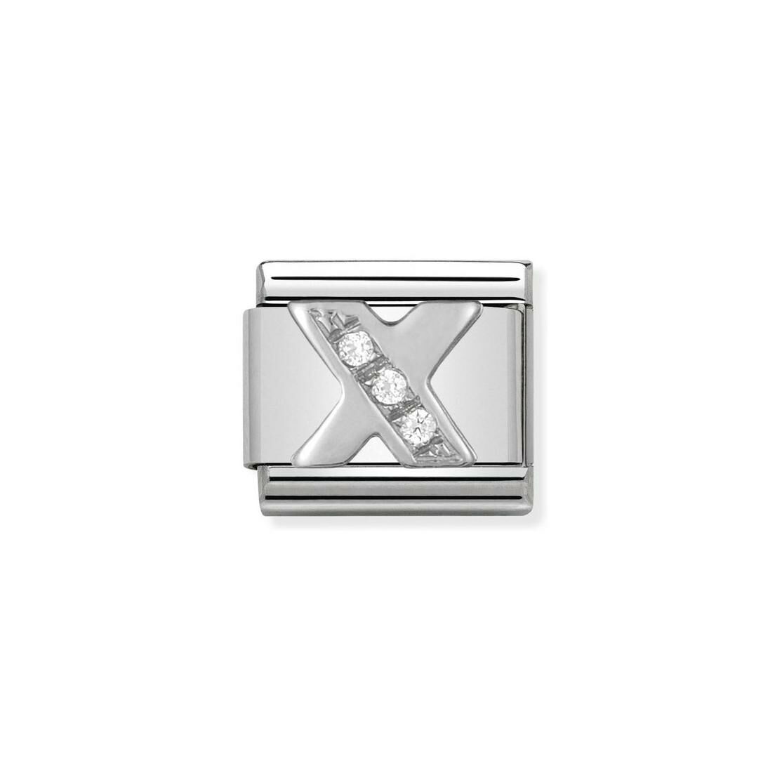 Charms Nomination Italy Composable Alphabet en acier, argent et zircon, X