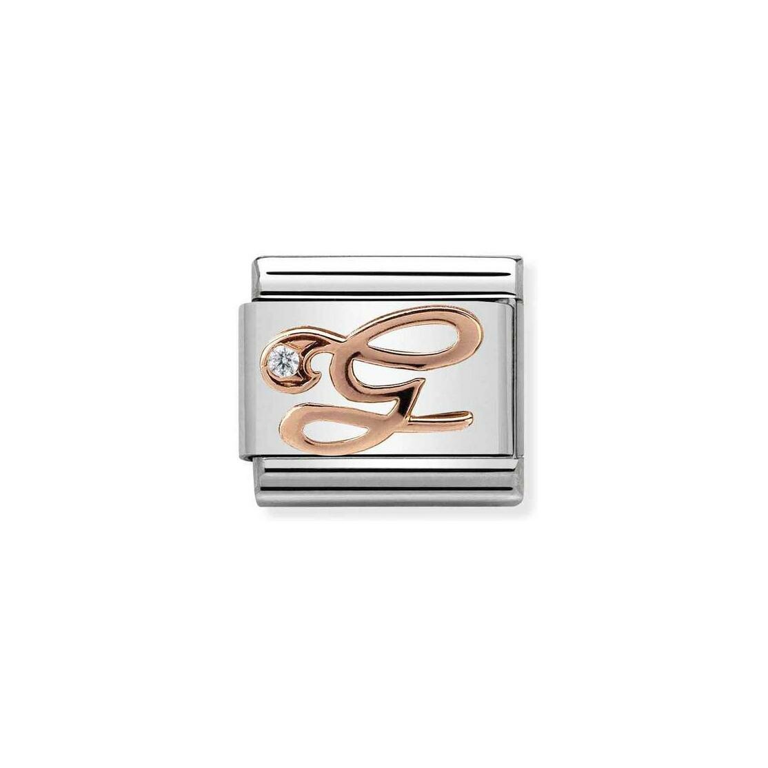 Charms Nomination Italy Composable Alphabet en acier, or rose et zircon, G