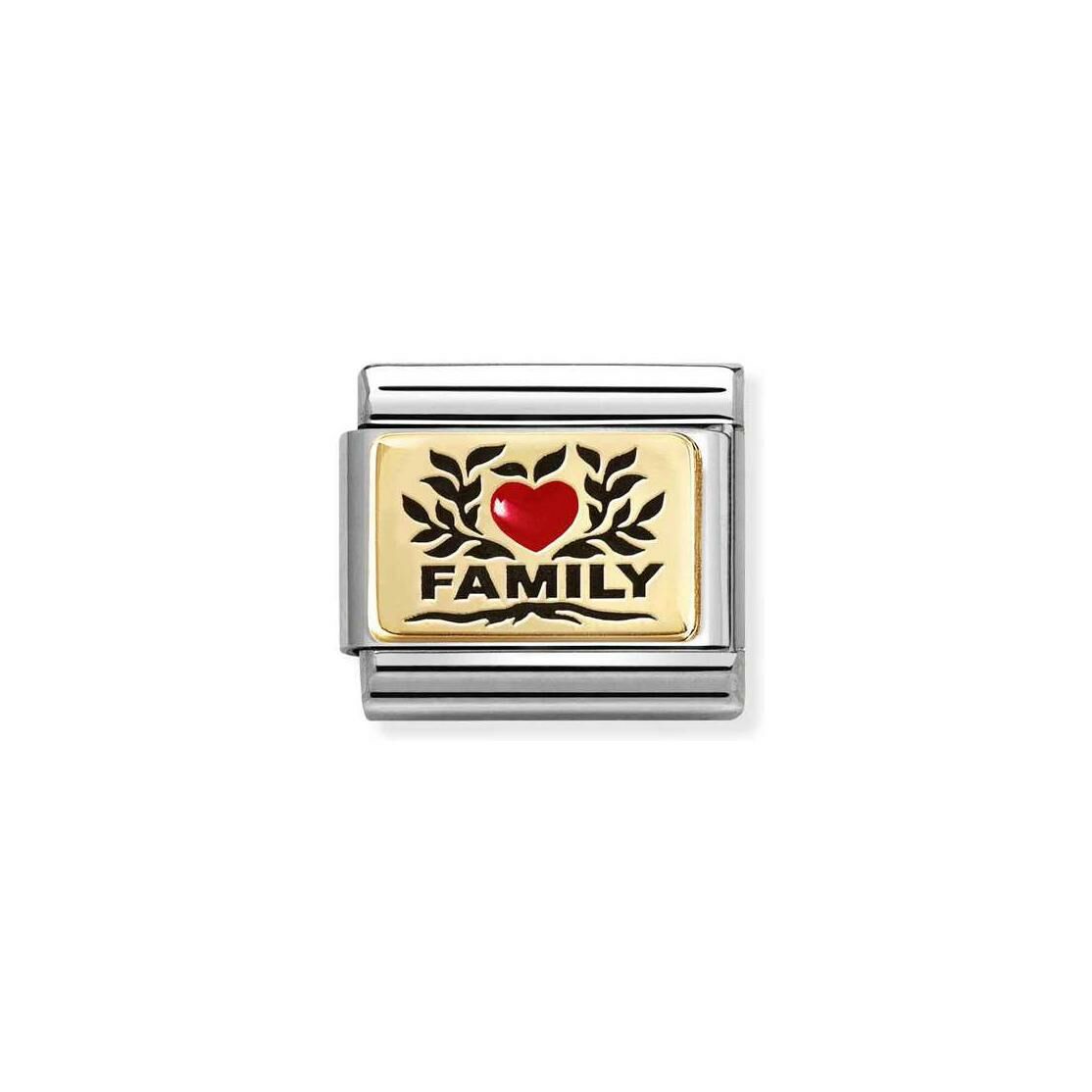 Charms Nomination Italy Composable en acier et or jaune, émail, Famille cœur