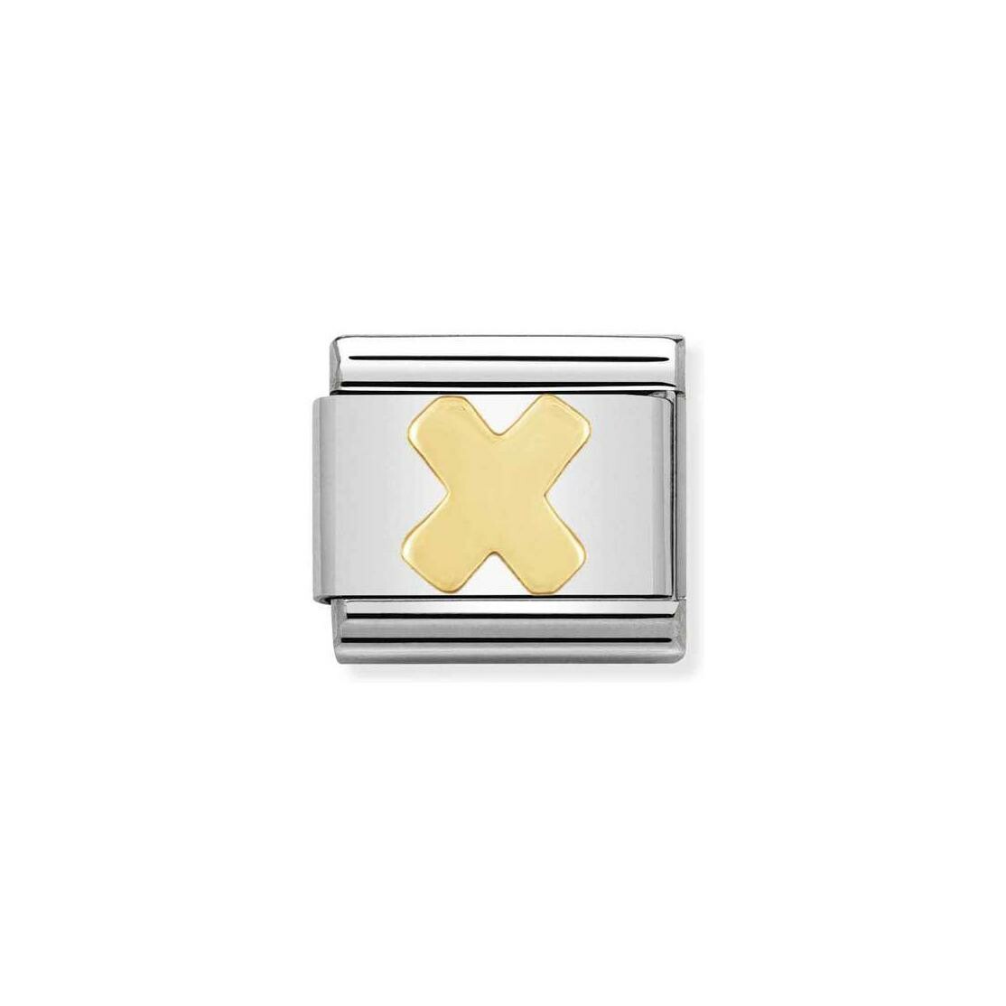 Charms Nomination Italy Composable Lettres en acier et or jaune, X