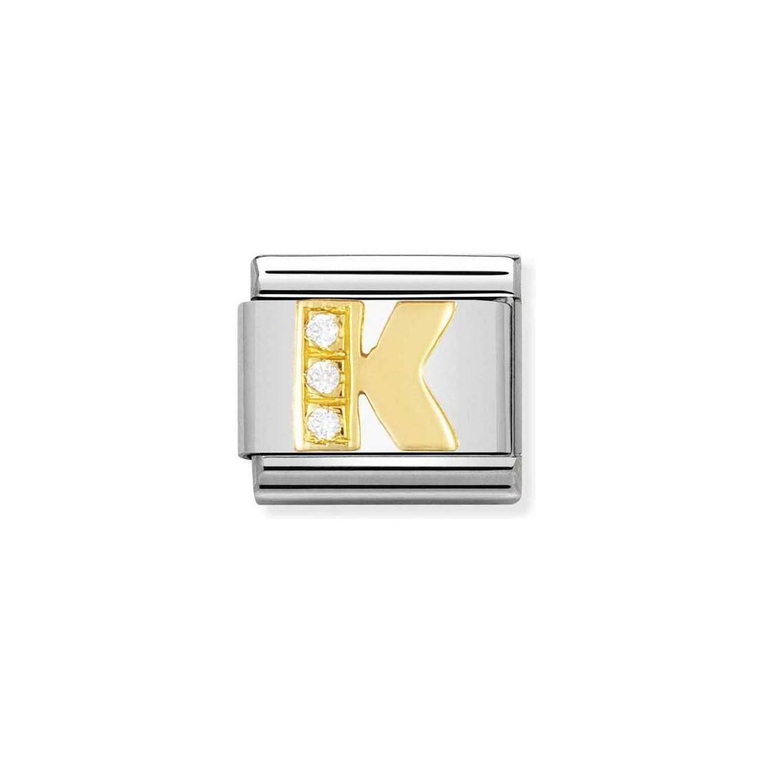 Charms Nomination Italy Composable Lettres en acier, or jaune et zircon, K