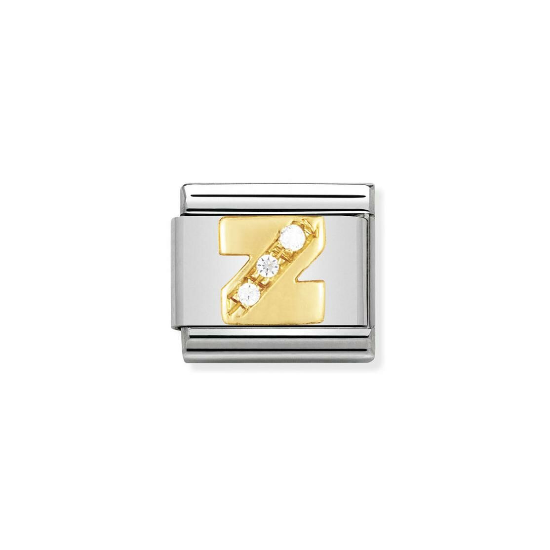 Charms Nomination Italy Composable Lettres en acier, or jaune et zircon, Z
