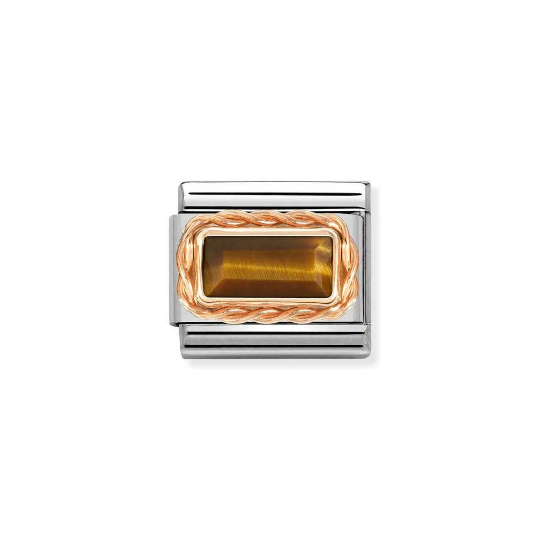 Charms Nomination Italy Composable Pierre en acier, or rose et œil de tigre