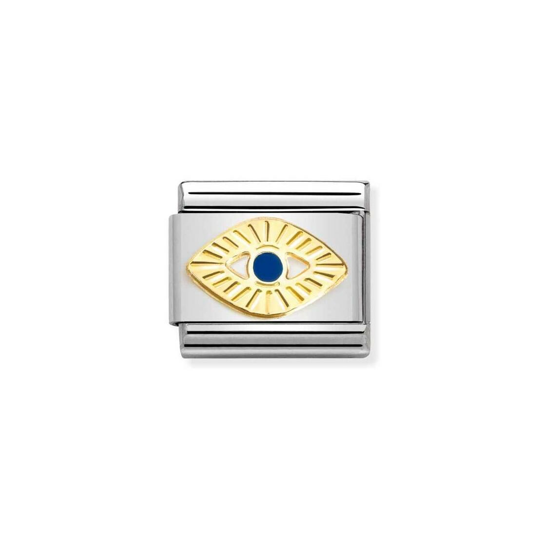 Charms Nomination Italy Composable Symboles en acier et or jaune, émail, Oeil de Dieu diamanté