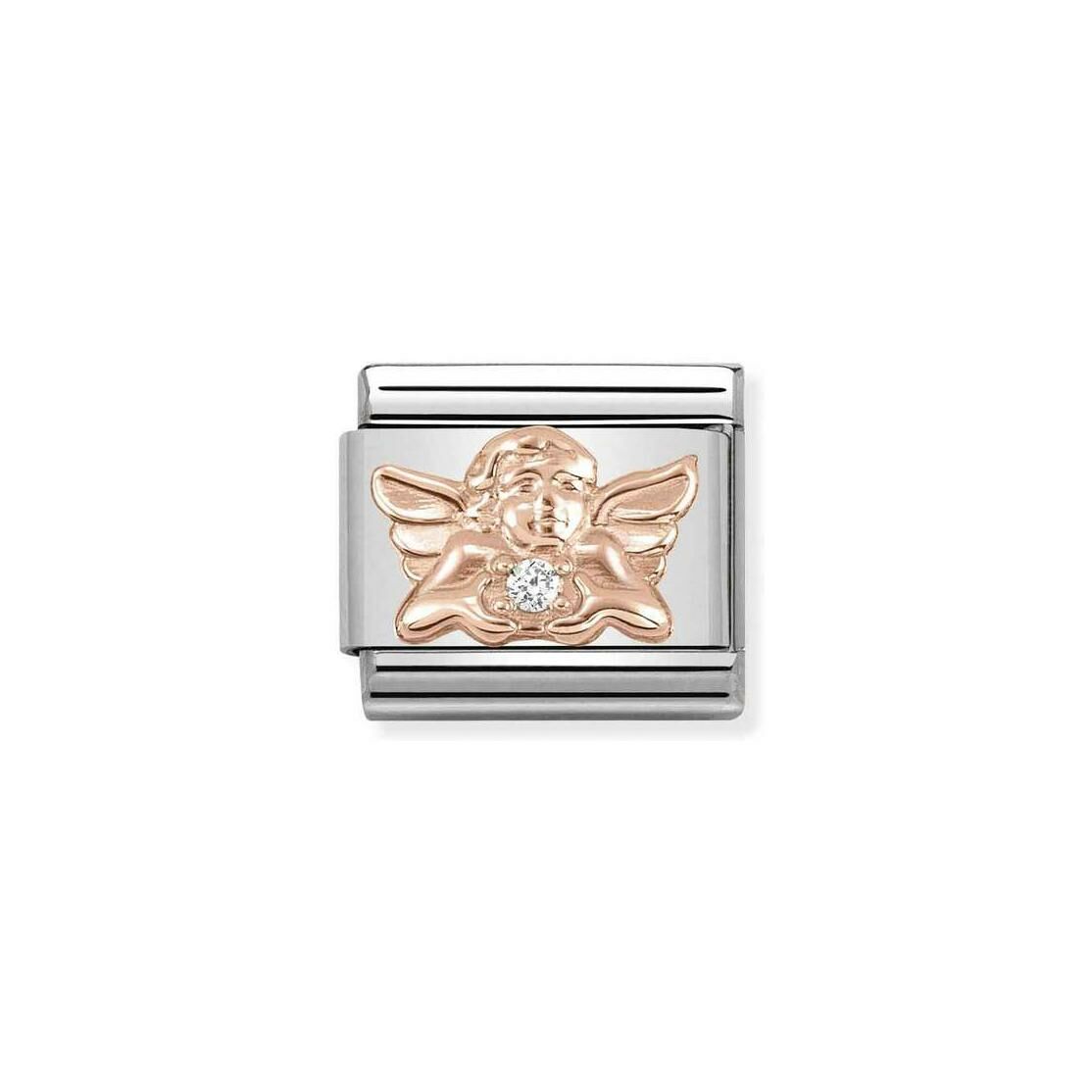 Charms Nomination Italy Composable Symboles en acier, or rose et zircon, Ange