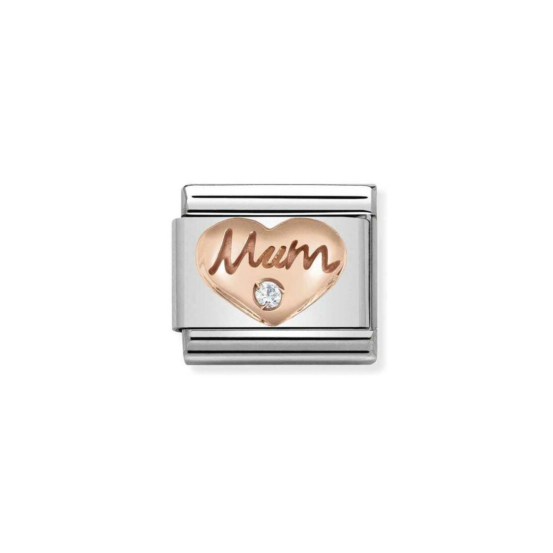 Charms Nomination Italy Composable Symboles en acier, or rose et zircon, Coeur Mum