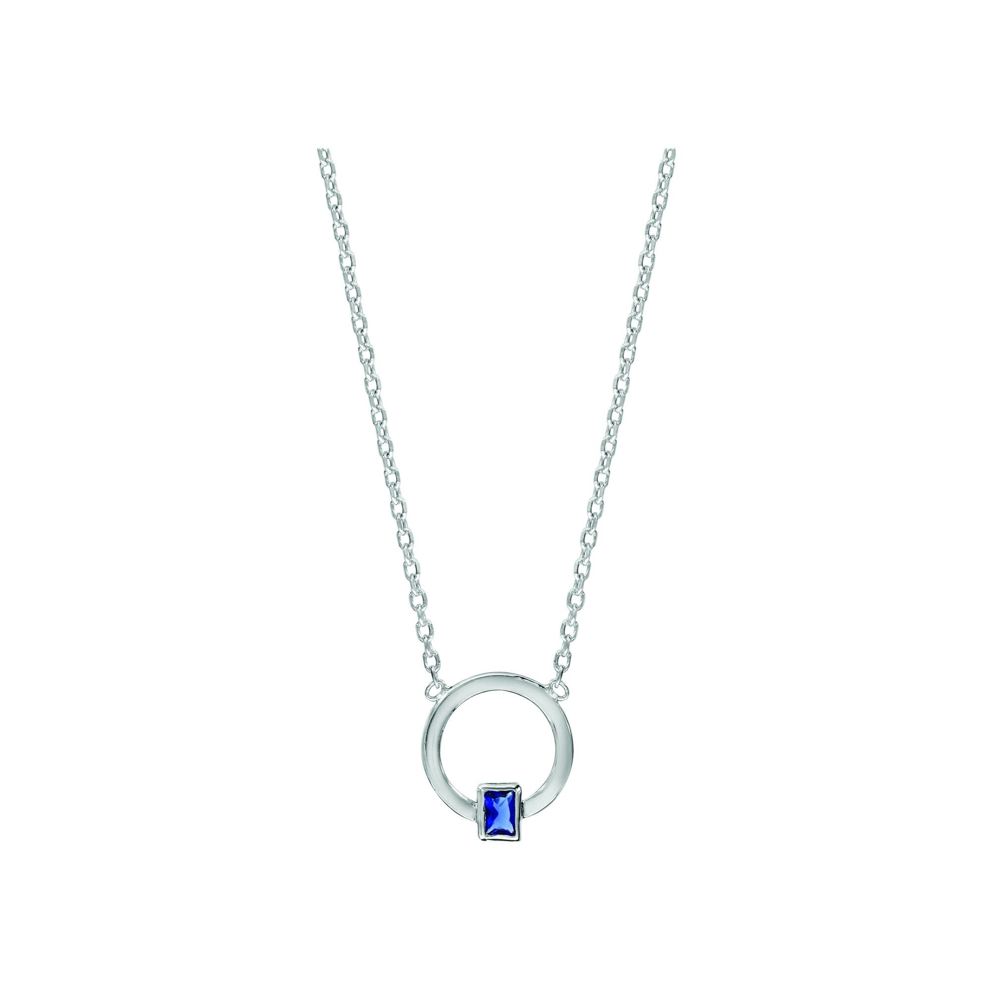 Collier argent rhodié cercle oxyde rectangle bleu 38+4cm