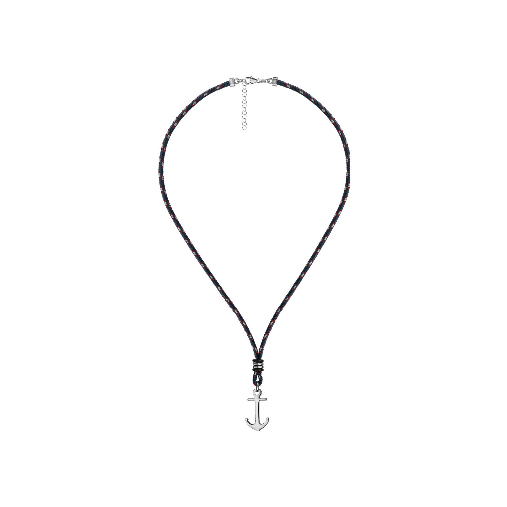 Collier argent rhodié corde bleue et rouge ancre marine 45+5cm