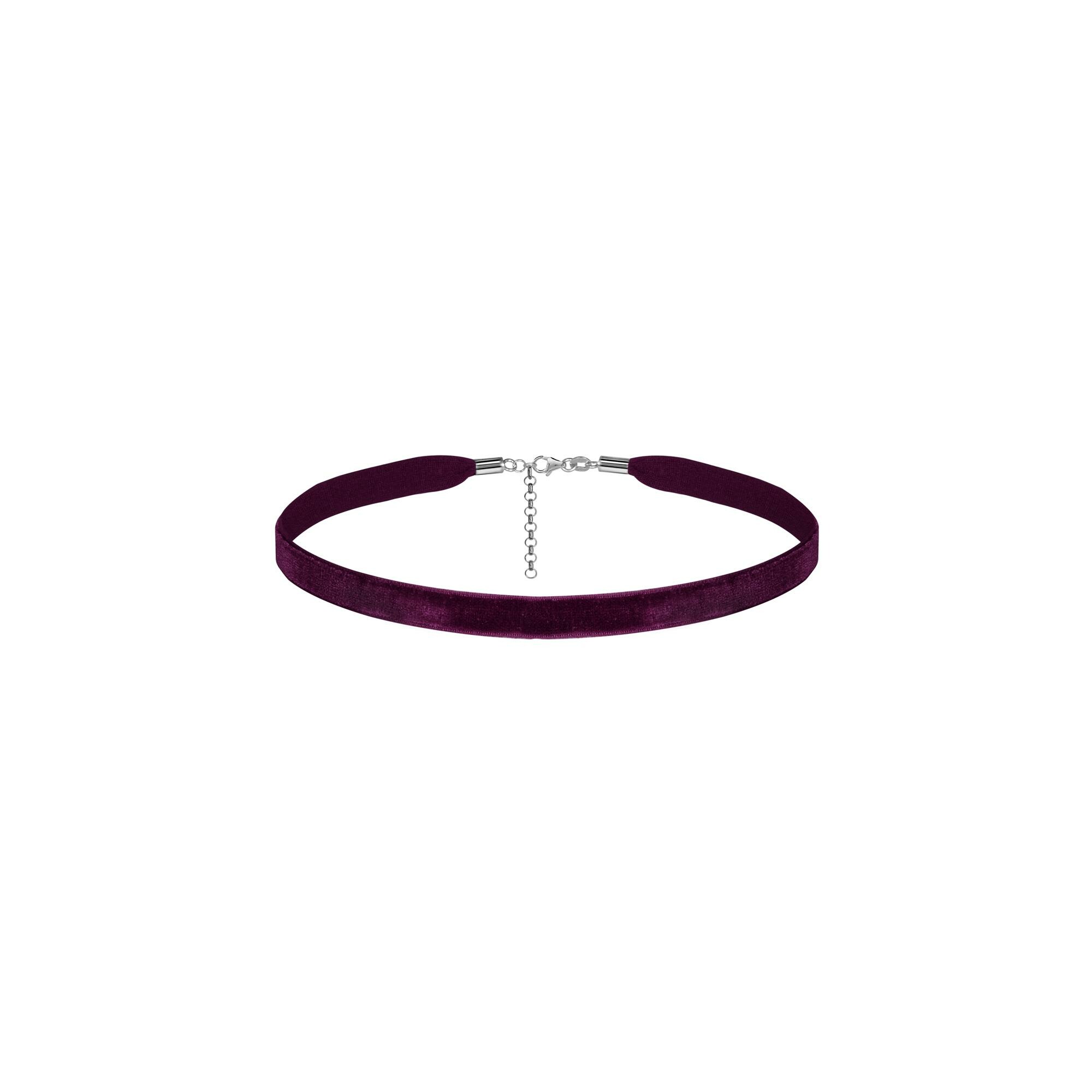 Collier ruban choker velour grenat en argent rhodié et textile